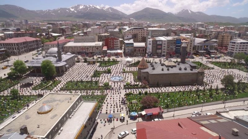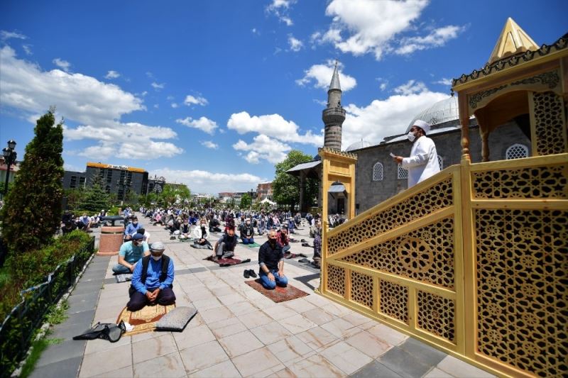 Korona virüs nedeniyle ibadete ara verilen ve bugün cuma namazıyla birlikte açılan camilerden; Lalapaşa, Çifte Minareli Medrese ve Kale Mescidi önündeki açık alanlarda sosyal mesafe kurallarına uygun olarak, Yakutiye Belediyesi’nin dağıttığı 10 bin adet seccade, tek kullanımlık maske ve dezenfektan seti ile hijyenik bir ortamda cuma namazı eda edildi.