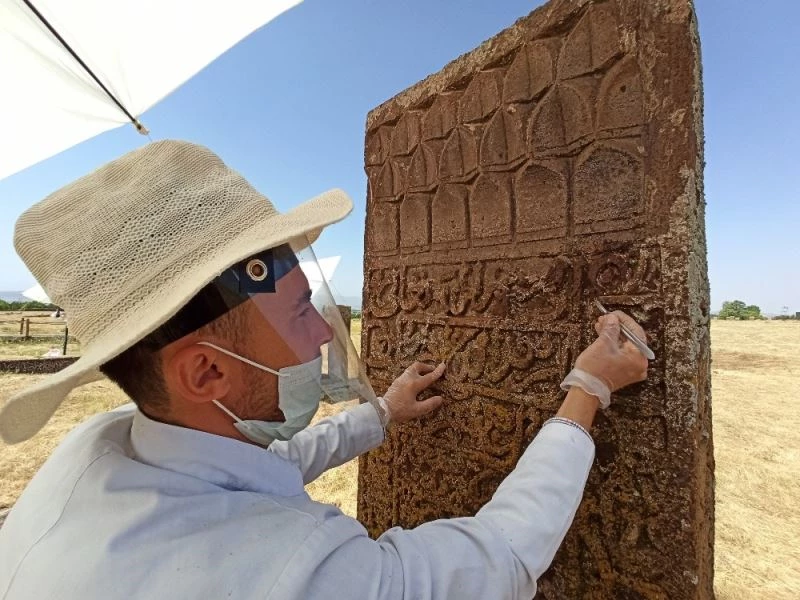 Bitlis’in Ahlat ilçesinde bulunan dünyanın en büyük Türk İslam mezarlığı olma özelliğini taşıyan Selçuklu Meydan Mezarlığı’ndaki tarihi taşların temizlik ve okuma çalışmaları devam ediyor.