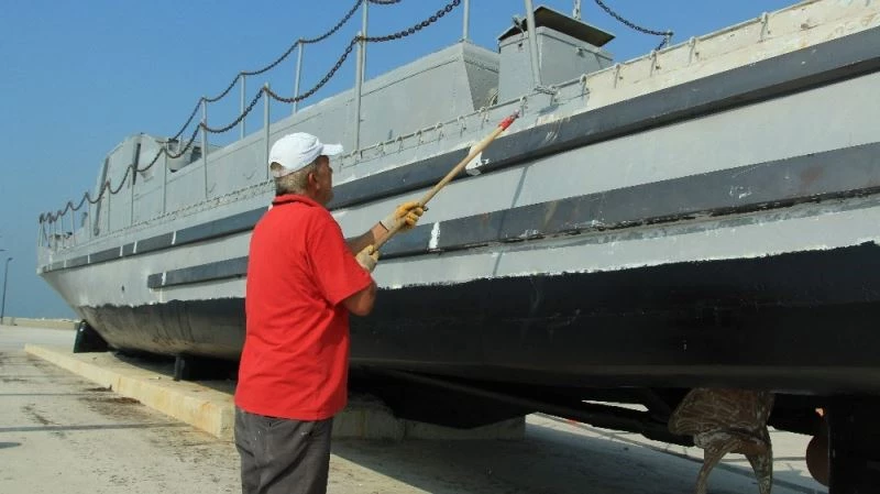 Mersin Büyükşehir Belediyesi Park ve Bahçeler Dairesi Başkanlığı ekipleri, bir zamanlar denizlerin ve gökyüzünün efsaneleri olan, görev sürelerini tamamladıktan sonra sahilde sergilenmeye başlanan ve yıllar içinde Akdeniz’in nemli iklim şartlarına karşı yorgun düşen savaş gemisi ve savaş uçağının bakım ve boyamasını yapıyor.