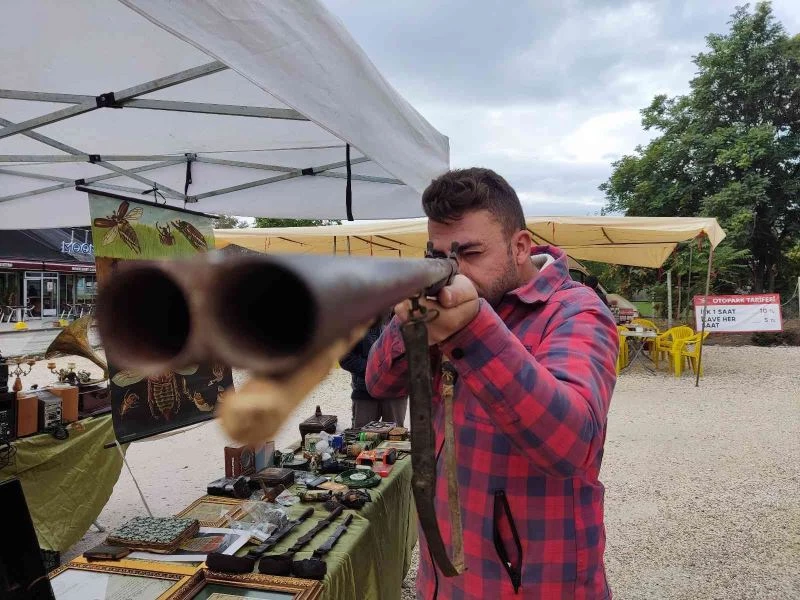Uşak’ta yaşayan antikacı İbrahim Efe, Eskişehir Antika Pazarı’nda tezgah açarak nostalji severlerle buluştu. Antikacı Efe’nin tezgahında, eski dönümlere ait birçok ürün yer alırken, en dikkat çekenler ise tarihi tüfek oldu. İngiliz yapımı olan ve 150 yıllık olduğu belirtilen tüfek, pazarı ziyaret eden vatandaşların ilgi odağı oldu. Doldurma mekanizmasına sahip olan antika tüfek, çakmaklı sistemle ateşlenerek patlatma usulüne dayanıyor. Tüfeğin Şam çeliğinden yapıldığını vurgulayan Efe, kabzasının ise ceviz ağacından hazırlandığını belirterek, nadir özelliklerini öne çıkarıyor. Tarihine rağmen tüfeğin aktif olarak kullanıldığını dile getiren Efe, savaş döneminden kalma ganimet malı olabileceğini de sözlerine ekliyor.