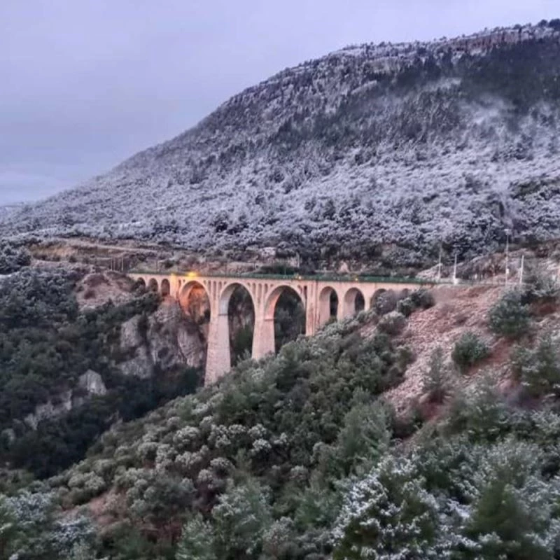 Adana’nın merkez ilçesi Karaisalı’da bulunan Varda Köprüsü’ne 9 yıl aradan sonra ilk defa kar yağdı.