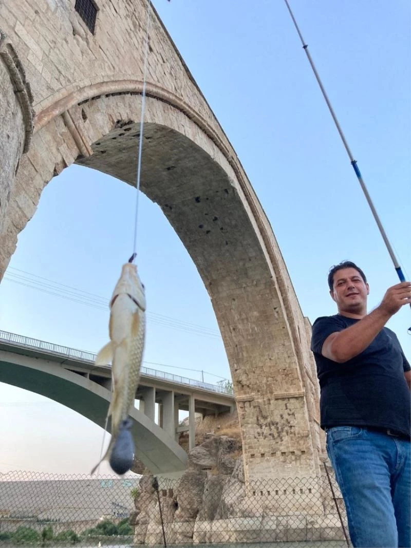 Tarihi ve doğal güzelliklerin bir arada olduğu Batman Çayında gençler, Artuklular döneminden günümüze ulaşan Malabadi Köprüsü ve Batman Barajı manzarasında olta balıkçılığı yapıyor.