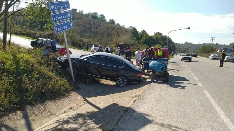 Tarım aracı ile otomobil çarpıştı 1 kişi yaralandı
