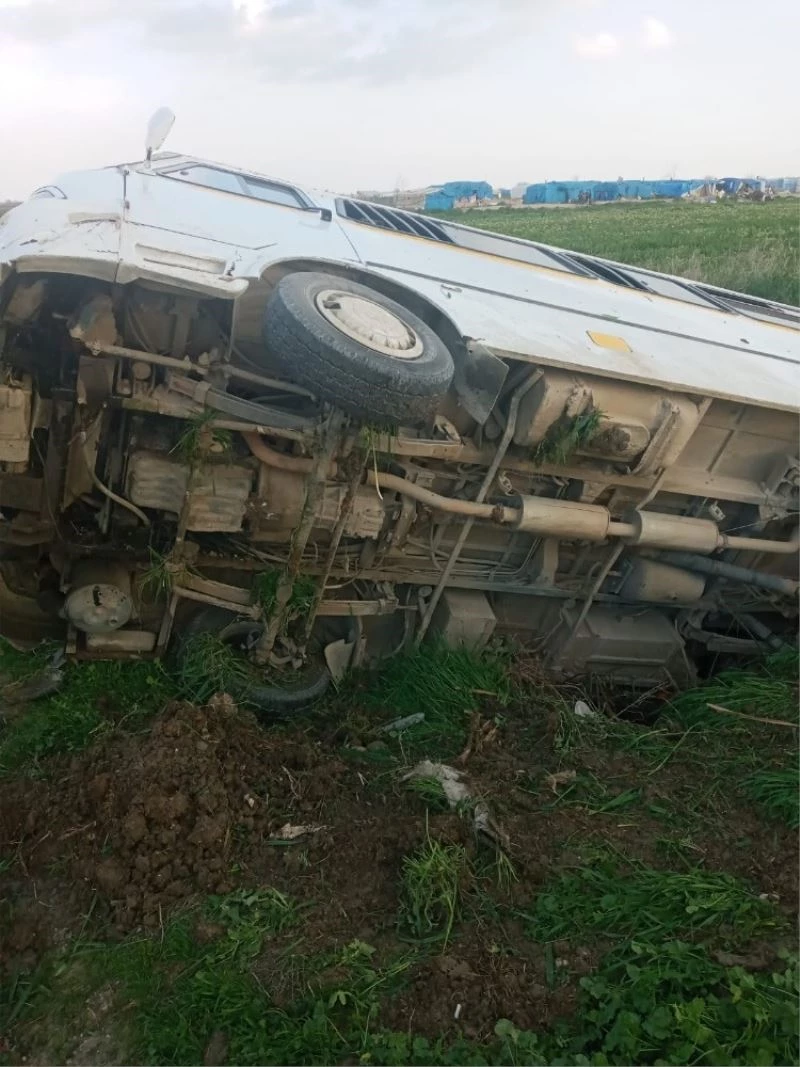 Mersin’in Tarsus ilçesinde tarım işçilerini taşıyan minibüs devrildi. Kazada yaralanan olmazken minibüs kullanılamaz hale geldi.