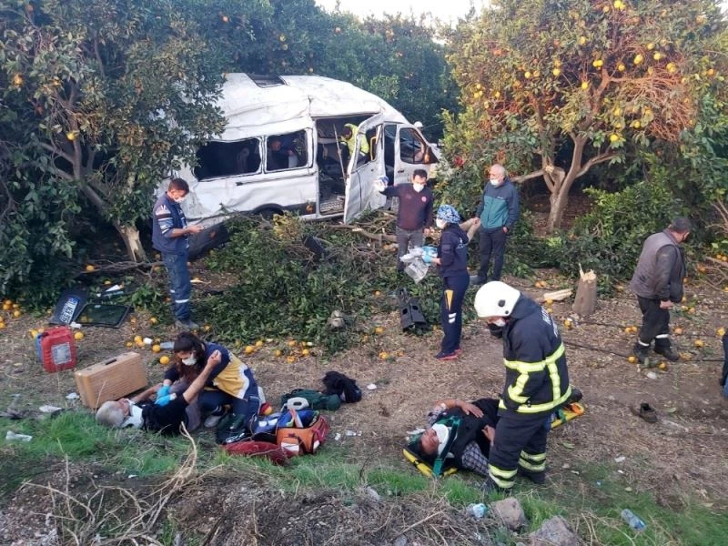 Osmaniye’de tarım işçilerini taşıyan minibüsün portakal ağaçlarına çarpması sonucu meydana gelen kazada 9 kişi yaralandı.