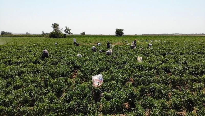 Edirne’de tava ciğerin can yoldaşı acı biberin toplanması için zaman zaman 40 dereceyi bulan sıcak havada güneşin altında çalışan tarım işçileri alın teri ile ekmek parası kazanıyor.