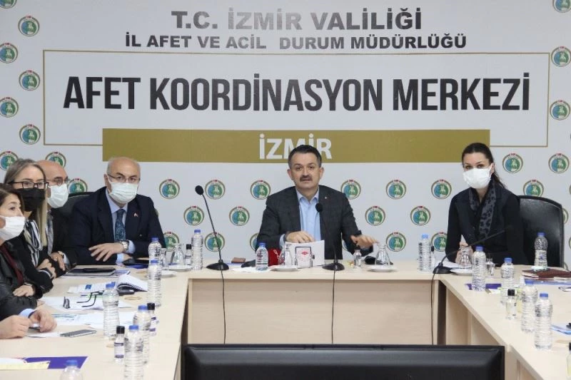 Tarım ve Orman Bakanı Bekir Pakdemirli başkanlığında, İzmir’de İl Afet ve Acil Durum Müdürlüğü Afet Koordinasyon Merkezinde koordinasyon toplantısı gerçekleştirildi. Yapılan koordinasyon toplantısının ardından açıklamalarda bulunan Bakan Pakdemirli, arama kurtarma çalışmalarının ardından binaların hasar tespitlerinin de tamamlandığını söyledi.