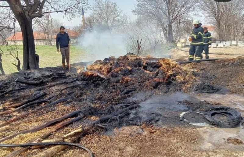 Burdur’da tarlada alev alan saman balyaları itfaiyenin müdahalesiyle söndürüldü.