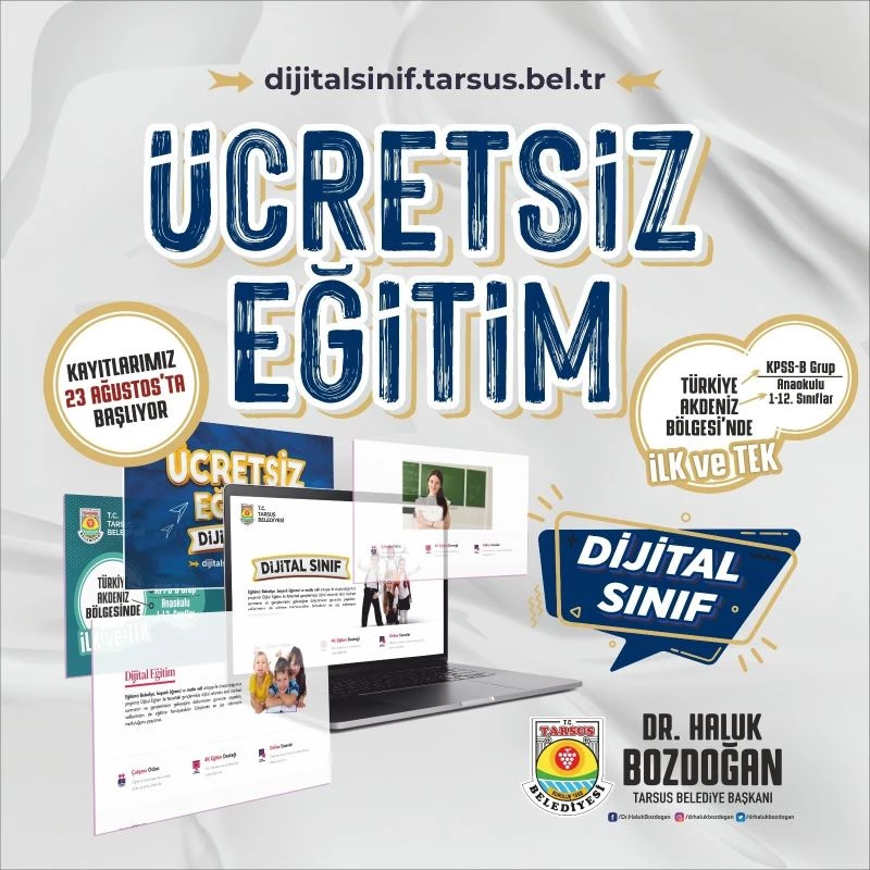 Tarsus Belediyesinden yapılan açıklamaya göre, “Her Mahalleye Okuma Salonu” sloganıyla onlarca okuma salonunu mahallelere kazandıran Başkan Haluk Bozdoğan, öğrencilerin ihtiyaçlarıyla teknolojinin olanaklarını buluşturan bir projeye daha imza attı. Dijital Sınıf adı verilen proje, her eğitim kademesinden öğrencilerin, üniversite adaylarının ve Kamu Personel Seçme Sınavına (KPSS) hazırlanan memur adaylarının, özel dershane ya da etüt merkezlerine gitmesine gerek kalmadan ders anlatımı, soru bankası, eşzamanlı online deneme sınavı gibi olanaklardan faydalanmalarını sağlayacak.
