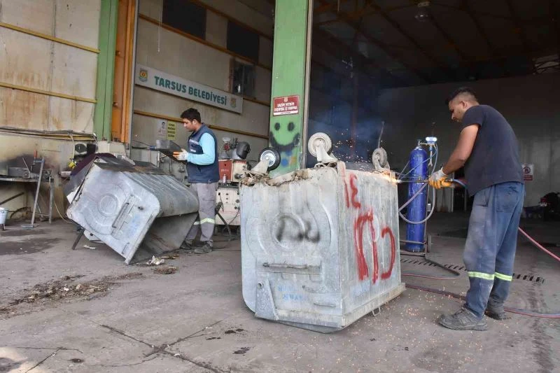Tarsus Belediyesinden yapılan açıklamaya göre, Temizlik Müdürlüğünün Bakım Onarım Atölyesine getirilen işlevini yitirmiş ya da çeşitli nedenlerle kullanılamaz hale gelen çöp konteynerlerinin çürüyen aksamları kaynakla sac ekleme yöntemi ile onarılıp, içinde biriken çöp sularını akıtmalarının önüne geçiliyor. Tüm aksamları gözden geçirilen konteynerler, tekerlek ve kapak arızalarından arındırıldıktan sonra daha sağlam hale getiriliyor. Yapılan onarım çalışmasının ardından boyanan konteynerler yeniden hizmete kazandırılıyor.