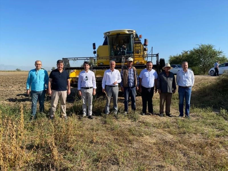 Konuşmaların ardından yerli soya tohumu Samsoy'un ilk hasadı yapıldı.