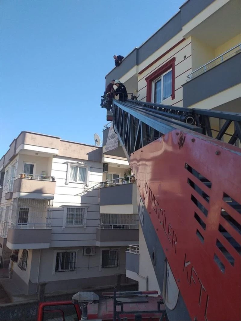 İtfaiye ekipleri, evin balkonuna merdivenle çıkarak 1,5 yaşındaki çocuğu kurtardı.