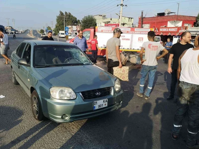 Mersin’in Tarsus ilçesinde otomobil ile çarpışan motosikletin sürücüsü yaralandı.
