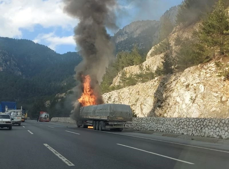 Mersin’in Tarsus ilçesinde seyir halindeki tır aniden alev alarak yandı.
