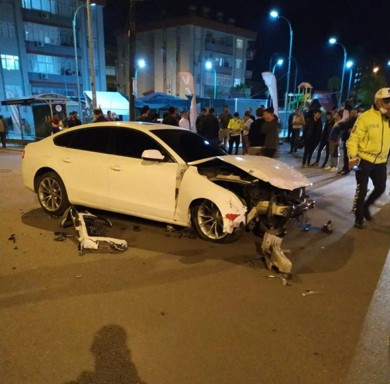 R.K. idaresindeki 01 BLT 30 plakali otomobil Orhun Caddesi üzerinde sürücüsünün direksiyon hakimiyetini kaybetmesi sonucu önce park halindeki bir otomobile ardindan da karsi yönden gelen F.A'nin kullandigi 33 NB 787 plakali otomobile çarpti.
