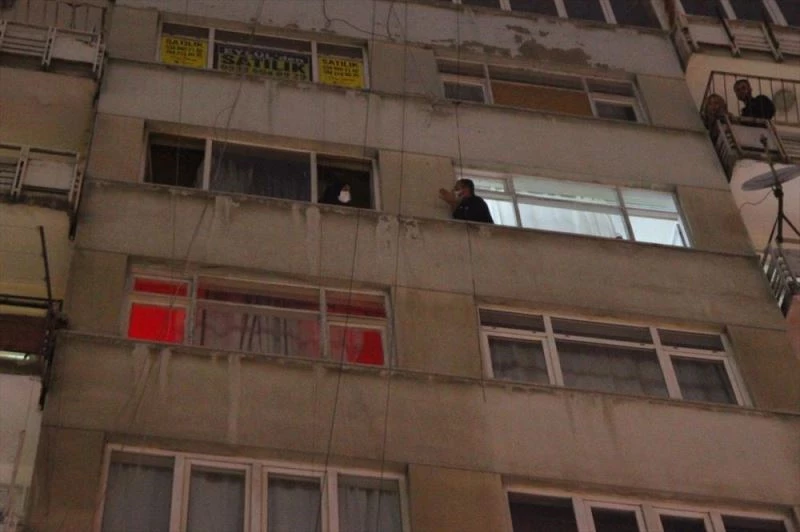 Tartışmanın ardından 6. katta bulunan dairelerinin camından çıkarak yan daireye kaçan kadın burada mahsur kaldı.