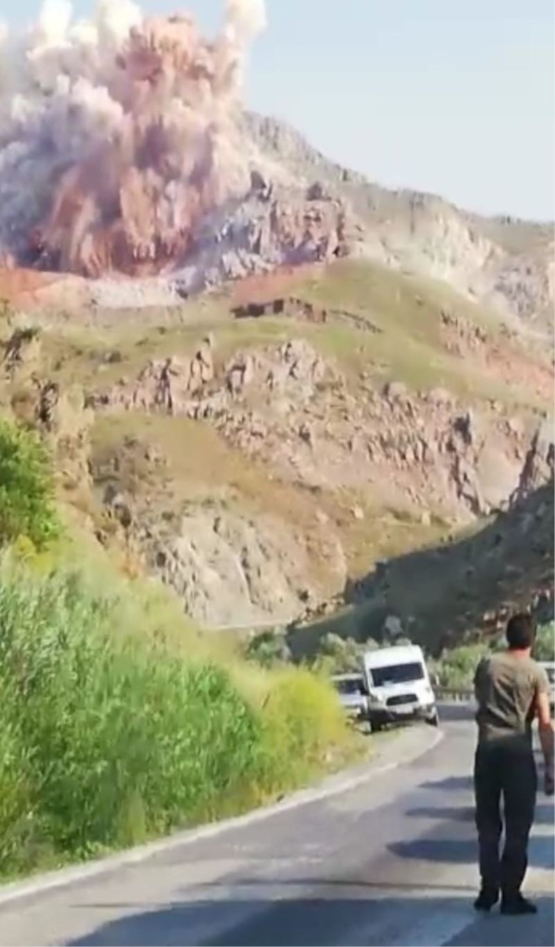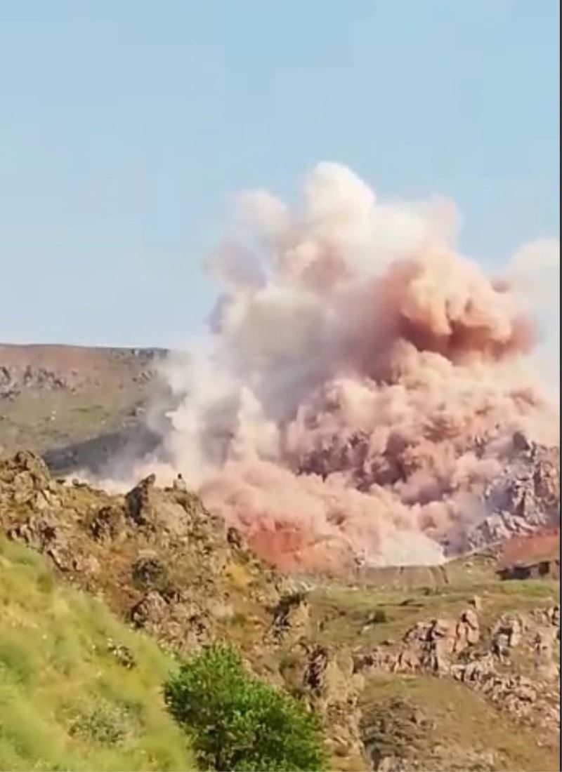 Hakkari’nin Yüksekova ilçesindeki bir taş ocağında gerçekleştirilen patlama, saniye saniye kameraya yansıdı.
