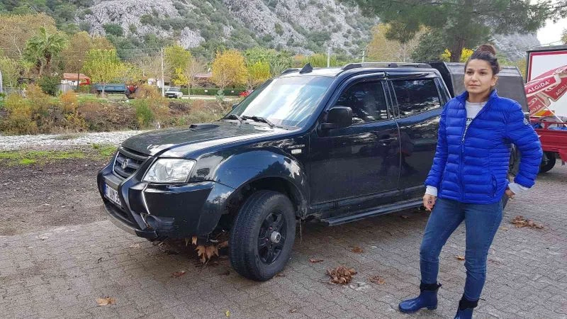 Taşan derede mahsur kalan kadını turistler kurtardı