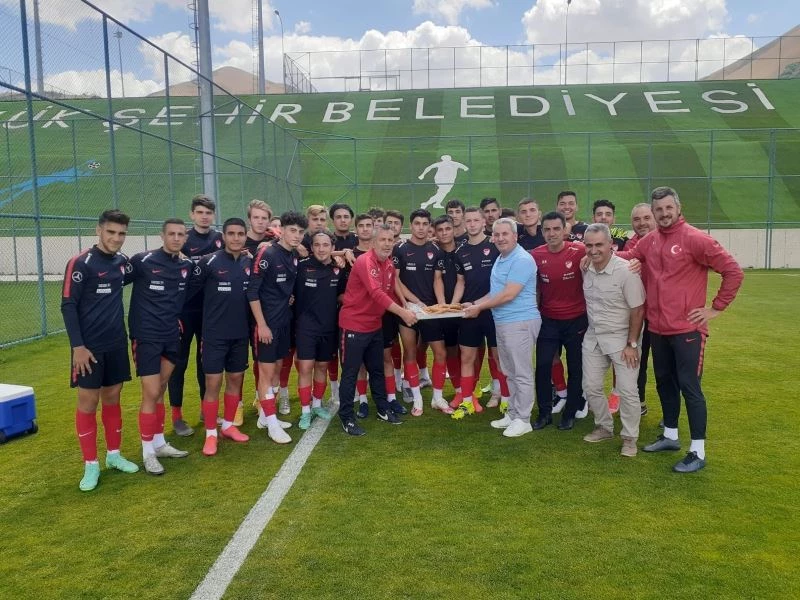 Erzurum Gençlik ve Spor İl Müdürü Fuat Taşkesenligil, Büyükşehir Belediyesi Yüksek İrtifa Kamp Merkezi’nde kamp yapan U19 Yaş Milli Takımını ziyaret ederek baklava ikram etti.