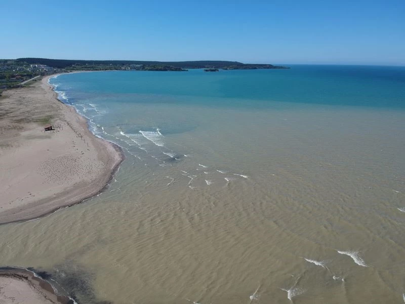 Denizde oluşan çamur rengi dron ile havadan görüntülendi.