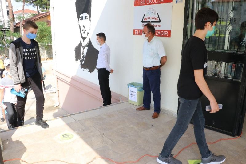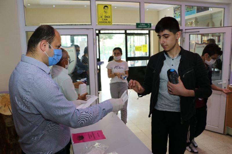 Okul girişlerinde öğrenciler için bulunan dezenfektan ve maskeler öğrencilere dağıtıldı. Bazı öğrencilerin ihtiyaç duyacakları su, dezenfektan ve peçeteyi yanlarında getirdikleri ve çoğunun maskeli oldu gözlemlendi. İlçe Milli Eğitim Müdürü Mustafa Tümer’in yaptığı açıklamada 12 okulda, 37 salonda, 137 görevli öğretmen ile LGS’nin yapılacağını söyledi. Daha sonra Tümer, “Mart ayından bu tarafa 3 aydır okullarınızdan ayrısınız. Olağanüstü bir dönem yaşadık. Bildiğiniz gibi hem dünyanın hem de ülkemizin mazur kaldığı salgın hastalık nedeniyle okullarımız tatil edildi. Daha doğrusu tatil değil, uzak eğitim yaptık. Bakanlığımız farklı metotlar geliştirerek bu süreci gerçekten çok başarılı şekilde atlattık. Belki olağanüstü durumda sınava hazırlandınız. Ama hiçbir zaman konsantrasyonunuzu kaybetmediğinizi biliyoruz. Bakanlığımızda bu yönde çaba gösterdi. Gerek EBA’dan uzaktan eğitim metoduyla gerekse bizzat öğretmenlerimizin canlı ders vermek suretiyle sizleri bu sürece hazırlamaya çalıştık. Hepinize başarılar diliyorum” dedi.