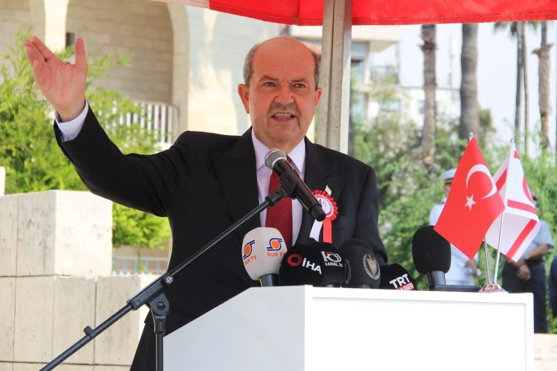 Kıbrıslı Türklerin çok acı çektiğini, çok göç yaşadığını, çok mağdur olduğunu belirten Tatar, “Hala daha ambargolar, izolasyonlar ve bir takım kısıtlamalarla bizim gençlerimizi, insanlarımızı mağdur etmek suretiyle baskı altında empoze ve dayatma bir çözüme zorlama yönünde oyunlar devam etmektedir. Ama Kıbrıslı Türkler, Rumların tanımladığı gibi evet büyük Türkiye’nin uzantılarıdırlar, birlik ve beraberlik içerisinde büyük bir mücadele ruhuyla bugünlere kadar gelmeyi başardık, bugünden sonra devletimizi yaşatmak, güçlendirmek ve tüm dünyaya yayılmış olan Kıbrıslı Türklerin devleti olan Kuzey Kıbrıs Türk Cumhuriyeti ilelebet yaşayacaktır. Bizi bir Rum cumhuriyetine yama yapmak için yapılan girişimlere ‘hayır’ demeye devam edeceğiz. Onun için Kuzey Kıbrıs Türk Cumhuriyeti diyorum, onun için Kıbrıs Türk Halkının bağımsızlığı, egemenliği diyorum ve anavatan Türkiye’nin garantörlüğü diyorum” dedi.