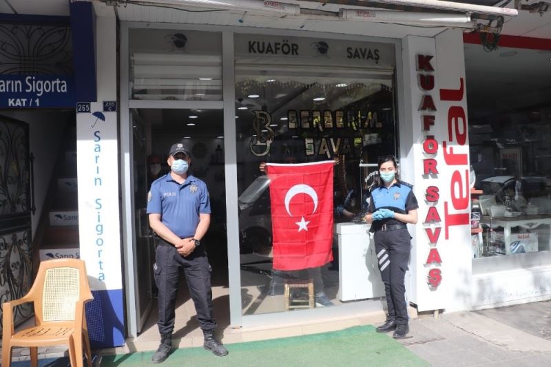 19 Mayıs Atatürk’ü Anma, Gençlik ve Spor Bayramı gibi anlamlı bir günde oldukça anlamlı bir hediye alan esnaf ise hem teşekkürlerini iletti hem de hediye edilen Türk bayraklarını iş yerlerine astı. İş yerleri, asılan Türk bayraklarıyla ilçe baştan sona bayraklarla donatılmış oldu.