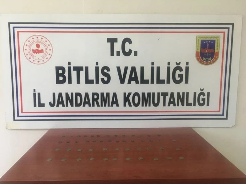 Bitlis’in Tatvan ilçesinde, jandarma ekipleri tarafından gerçekleştirilen operasyonda 50 adet gümüş sikke ele geçirildi.