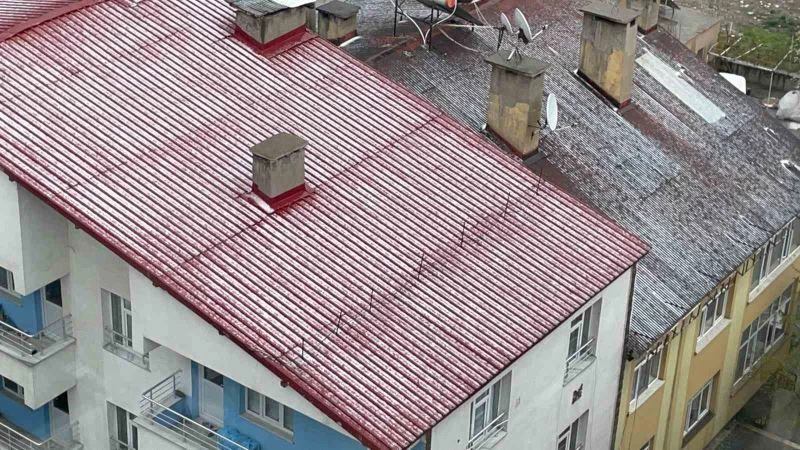 Bitlis’in Tatvan ilçesinde etkili olan dolu yağışı kenti beyaza bürüdü.