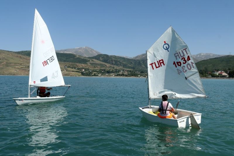 Bitlis’in Tatvan ilçesinde yeni tip korona virüs (Covid-19) salgını nedeniyle geçte olsa Van Gölü’nde yelken sporu antrenmanları başladı.