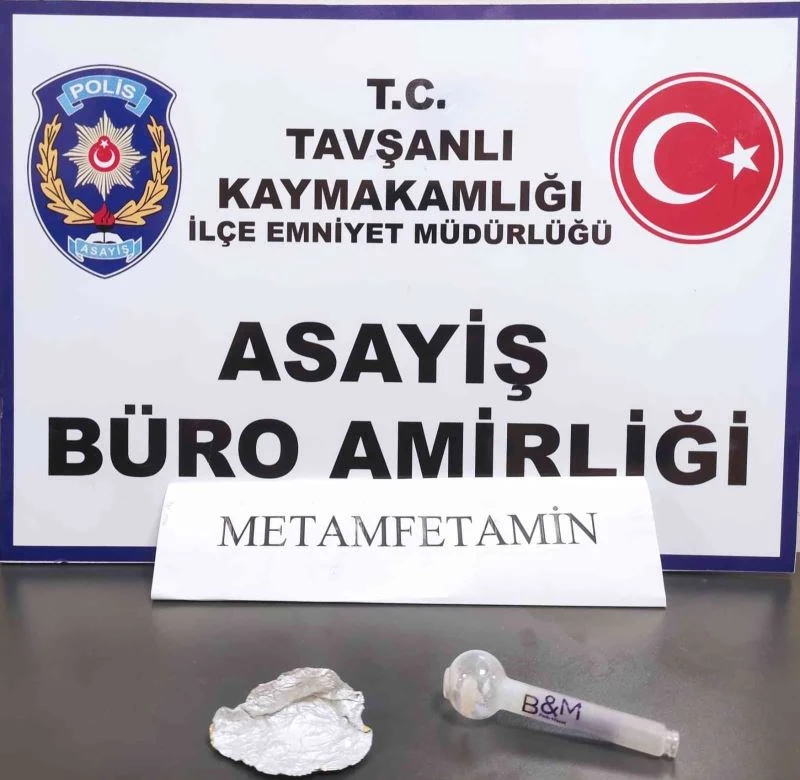 Edinilen bilgiye göre, Tavşanlı ilçesinde uyuşturucu kullanımını önlemek amacıyla yapılan çalışmalar neticesinde İlçe Emniyet Müdürlüğü ekiplerince Ulucami Mahallesi Yenidoğan Caddesi üzerinde şüpheli şahıslar üzerinde yapılan kontrollerde M.N.Y. isimli şahsın üzerinden uyuşturucu madde içiminde kullanılan içinde metamfetamin kalıntısı olan pipe ve jelatine sarılı vaziyette 0.53 gram metamfetamin maddesi ele geçirildi.