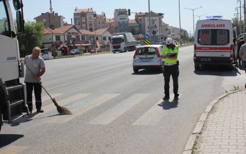 Alınan bilgiye göre, H.Ç. yönetimindeki 43 UH 844 plakalı kamyon aynı istikamete giden D.G. idaresindeki 43 HS 635 plakalı otomobile arkadan çarptı.