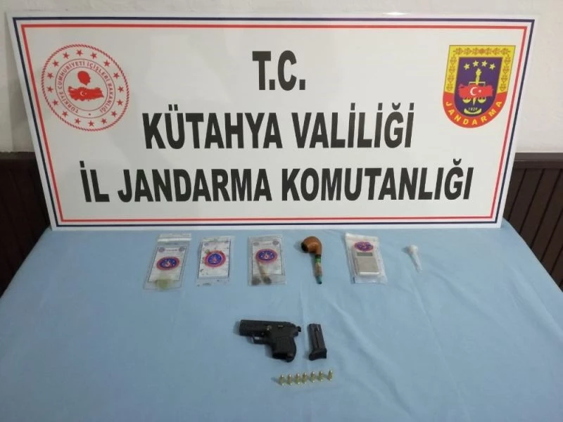 Verilen bilgiye göre, Tavşanlı İlçe Jandarma Komutanlığı ile Kaçakçılık ve Organize suçlarla Mücadele Şube Müdürlüğü ekipleri tarafından yapılan çalışmalar neticesinde K.D. (39) ve E.Ö. (32) isimli şahısların Tavşanlı ilçesinde kiraladıkları apart dairede uyuşturucu madde kullandıkları tespit edildi. Ekiplerce şüphelilerin kiraladığı apart daire ve araçlarında yapılan aramada, 5 gram bonzai, 1 adet sentetik hap, 3 adet uyuşturucu kullanma aparatı,1 adet 9 mm çapında tabanca, 1 adet tabanca şarjörü, 21 adet 9 mm çapında tabanca fişeği,1 adet 7,65 mm çapında tabanca fişeği ele geçirildi.