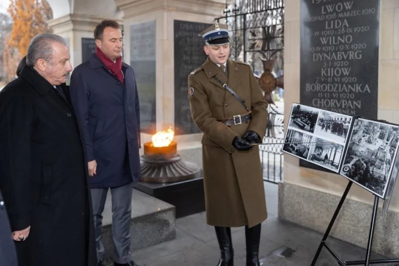 Şentop, beraberindeki parlamento heyeti ile birlikte Pilsudski Meydanı’ndaki Meçhul Asker Anıtı’na da çelenk bıraktı. Şentop, anıt özel defterini imzaladıktan sonra askeri geçiş törenini izledi.