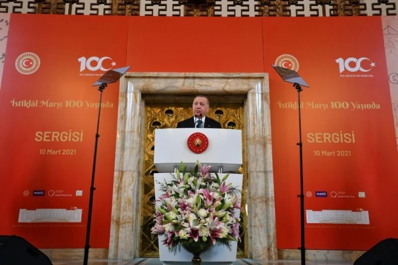 TBMM Şeref Holü’nde "100. Yılında İstiklal Marşı Sergisi" açıldı. Türkiye Büyük Millet Meclisi (TBMM) Başkanı Mustafa Şentop, İstiklal Marşı’nın 12 Mart 1921 tarihinde Mecliste ittifakla kabul edildiğini belirterek, "O günler ne samimi ne heyecanlı günlerdi. O şiir, milletin o günkü heyecanının bir ifadesidir. Bin bir facia karşısında bunalan ruhların ızdıraplar içinde kurtuluş dakikalarını beklediği bir zamanda yazılan o marş, o günlerin kıymetli bir hatırasıdır" dedi.