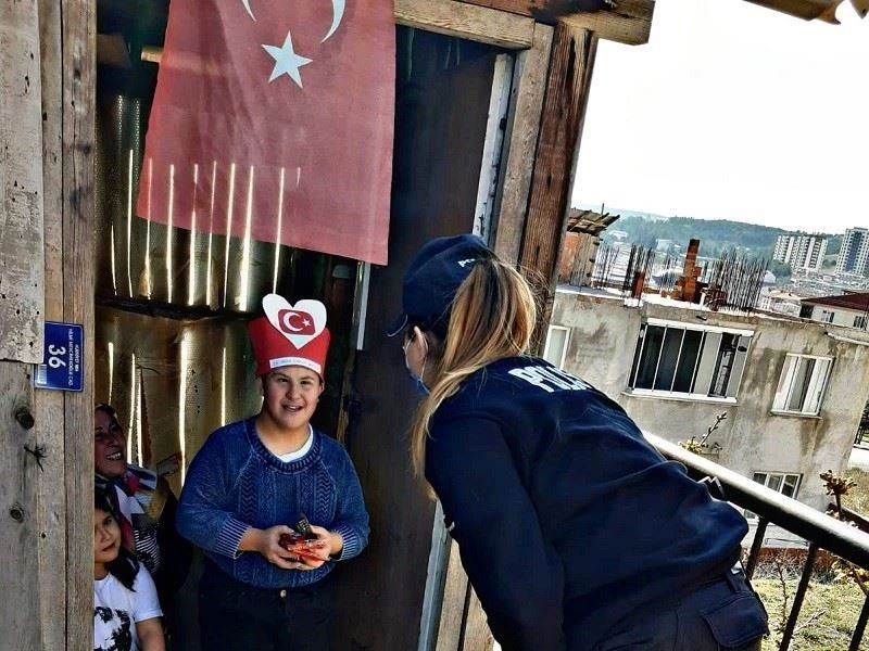 Bilecik’te polis ekipleri özel çocukları evlerinde ziyaret ederek, onlara sürpriz hediyeler verdi.