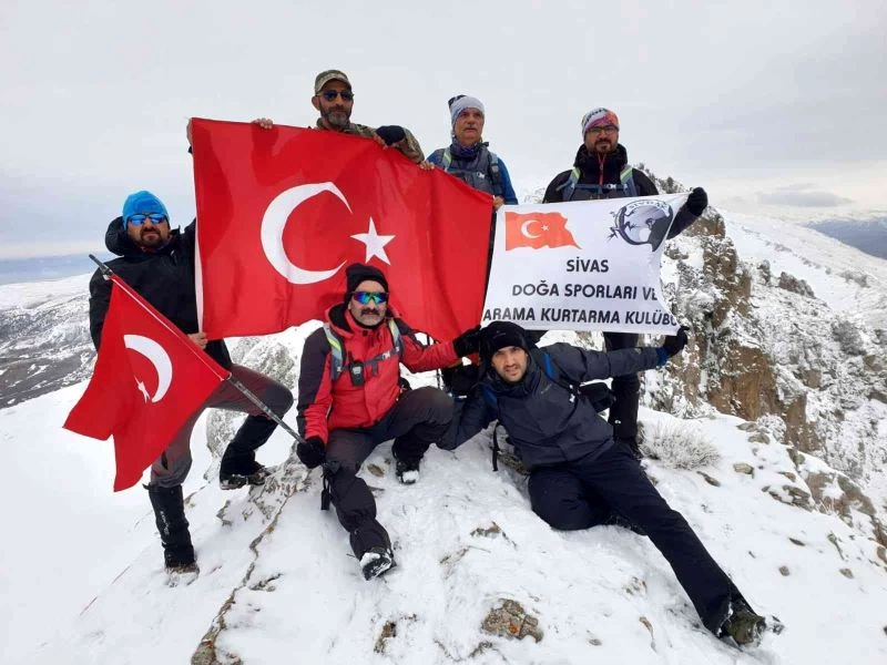 Sivas Doğa Sporları ve Arama Kurtarma Kulübü üyeleri, ‘Savaşa Hayır’ etkinliği adı altında 2262 rakımlı Tecer Dağı’na zirve tırmanışı gerçekleştirdi.