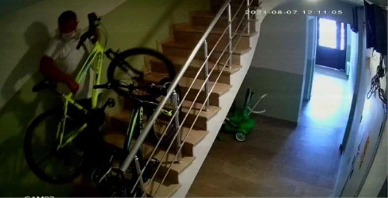 Teçhizatlı bisiklet hırsızı güvenlik kamerasına yakalandı