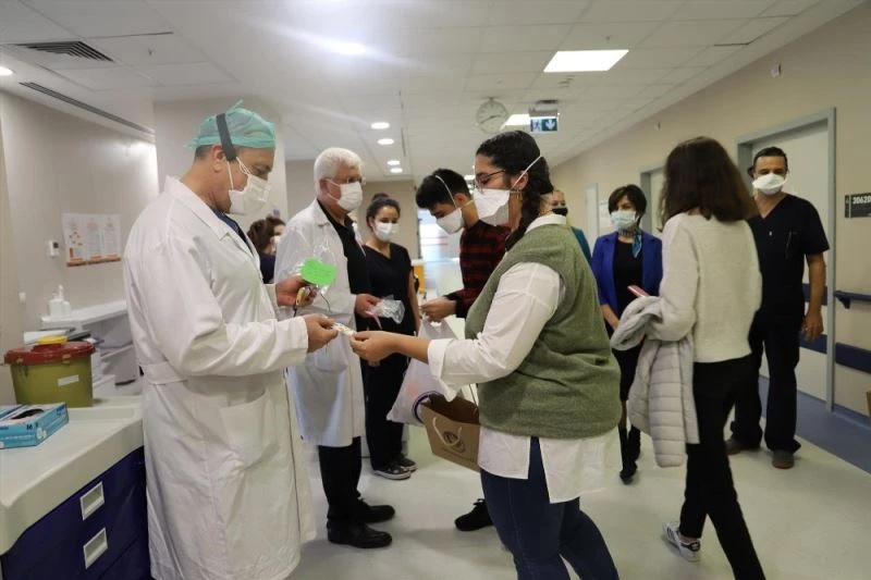 TED Ankara Koleji’nde öğrenim gören lise öğrencileri, her koşulda özveriyle görev yapan sağlık çalışanlarına teşekkür etmek için kendi elleriyle yaptıkları kurabiyeleri ve kitap ayraçlarını Ankara Şehir Hastanesi çalışanlarına hediye ettiler.