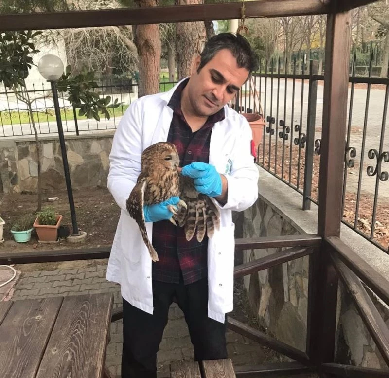 Vatandaşlar tarafından ilçesinde yaralı olarak bulunan alaca baykuş, Kaz Dağları Milli Parklar Şefliği’ne teslim edildi.