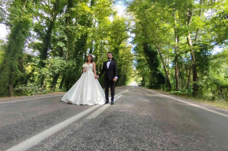 Ağaç tünellerde çekim yaptıran bir başka damat Murat Sivritepe ise “Kamerman abilerimiz sağolsun ama yine de zorlanıyorlar ve zor bir şekilde fotoğraf çekiyoruz. Araçlar vızır vızır geçiyorlar” dedi.