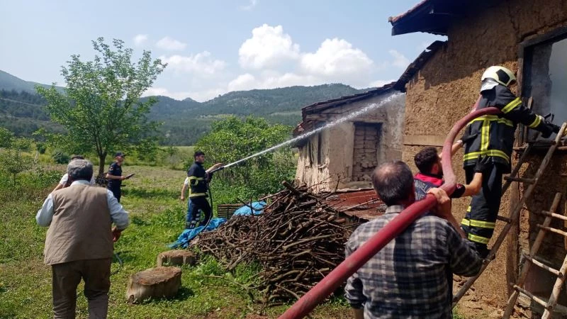 Tek katlı ahşap ev çıkan yangında ev kullanılamaz hale geldi