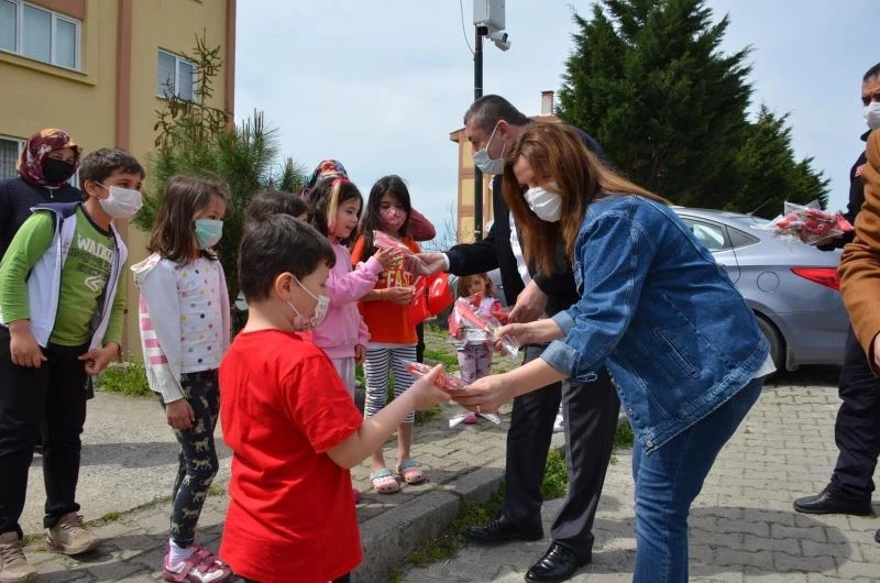 Alaplı Belediye Başkanı Nuri Tekin ve eşi Aysel Tekin, 23 Nisan Ulusal Egemenlik ve Çocuk Bayramı dolayısıyla çocuklara Türk Bayrağı ve çeşitli hediyeler vererek bayramlarını kutladı.