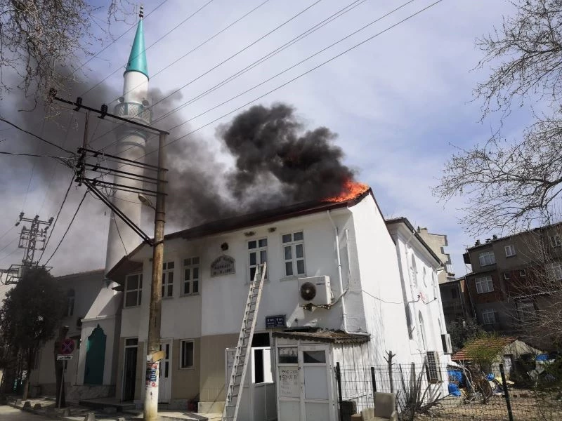 Tekirdağ’da cami yangını kamerada: Çatı alev alev yandı