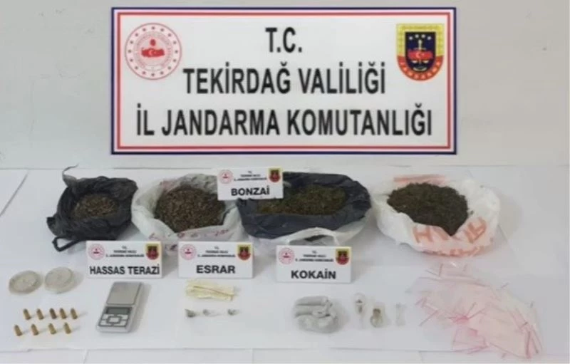 Tekirdağ İl Jandarma Komutanlığı ve İl Emniyet Müdürlüğü tarafından uyuşturucu madde ticaretine yönelik kökünü kurutma operasyonu gerçekleştirildi. Tekirdağ ve ilçelerinde uyuşturucu ve uyarıcı madde ticareti yapmak ve kullanmak suretiyle geleceğimizin teminatı olan gençleri zehirlemeye çalışan ve "Torbacı" olarak tabir edilen sokak satıcıları ile etkin mücadele edilmesi, huzur ve güven ortamının arttırılması maksadıyla uyuşturucu tacirlerine göz açtırılmadı. 11 ilçede eş zamanlı olarak ’Kökünü Kurutma Operasyonu’nda adreslere girilerek arama yapıldı. Aramalarda 2 kilo bonzai, 244 gram esrar, 105 gram kokain, 104 adet sentetik hap, 68 gram kenevir tohumu, 1 gram eroin, 2 adet hassas terazi, 3 adet ruhsatsız tabanca, 102 adet tabanca mermisi, 9 adet ruhsatsız av tüfeği, 57 adet av tüfeği fişeği, 1 adet iklimlendirme düzeneği, 13 adet uyuşturucu kullanma aparatı, 150 adet şeffaf kilitli poşet, 66 bin 900 litre kaçak şarap ele geçirildi.