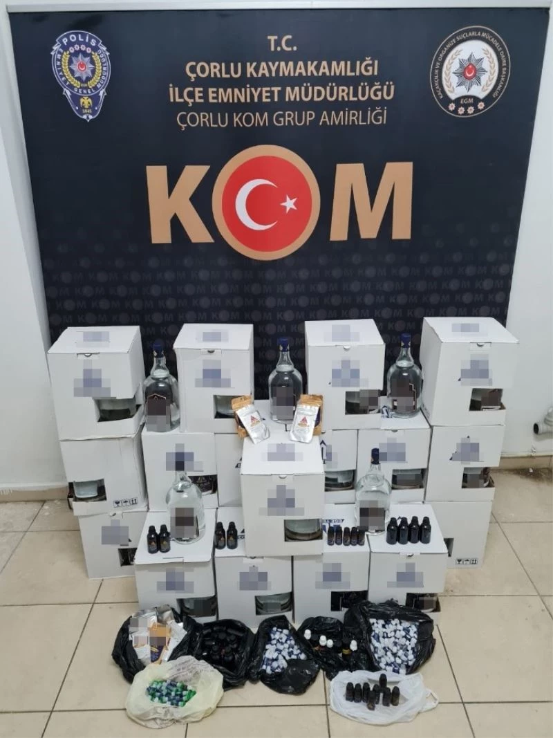 Tekirdağ İl Emniyet Müdürlüğü KOM Şube Çorlu Grup Amirliğine bağlı polis ekipleri, Çorlu ilçesinde Kaçakçılık Suçlarıyla Mücadele kapsamında çalışma yapıldı. Düzenlenen operasyonda bir işyeri ile araçta yapılan aramalarda, 86 şişe 2 litrelik olmak üzere toplamda 172 litre etil alkol, 349 tüp alkollü içki yapımında kullanılan esans ve aroma ele geçirildi. İşyerinde bulunan H.T.E. isimli şahıs yakalanarak soruşturma işlemlerine başlandı.