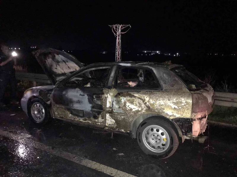 Tekirdağ’ın Muratlı ilçesinde hareket halindeki bir otomobil yanarak hurdaya döndü.