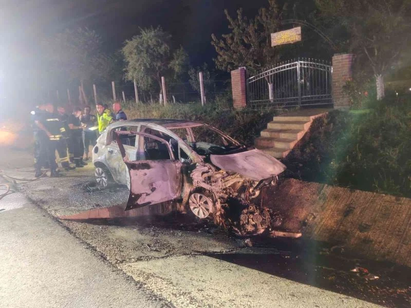 Tekirdağ’da takla atan otomobil alev aldı: 1 yaralı