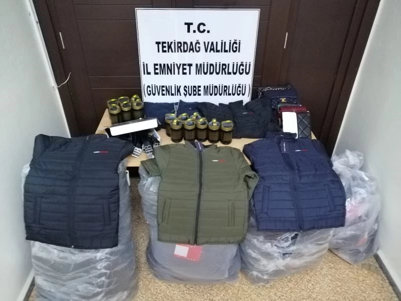 Tekirdağ İl Emniyet Müdürlüğü Güvenlik Şube ekiplerince 6769 sayılı markalar kanuna muhalefet suçu kapsamında Tekirdağ 1. Sulh ceza hakimliğinin arama ve el koyma kararıyla marka avukatları ile Tekirdağ’da faaliyet gösteren 5 iş yerinde arama yapıldı. Aramalarda, 85 adet mont, 14 adet kavanoz, 8 adet pantolon kemeri, 34 çift çorap ele geçirildi.