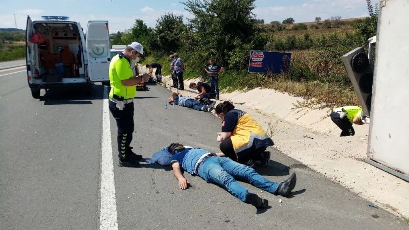 Tekirdağ’ın Malkara ilçesinde tuğla yüklü kamyona arkadan çarpan kamyonet devrildi. Kaza sonrası can pazarının yaşandığı olay yerinde yaralanan 3 kişi hastaneye kaldırıldı.